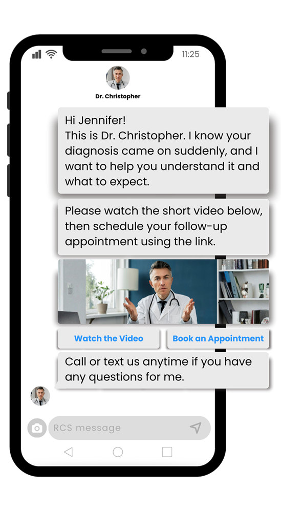 Hoot delivers physician-led video content directly to patients' phones using the latest messaging technology—no app downloads, no patient portals, no friction.