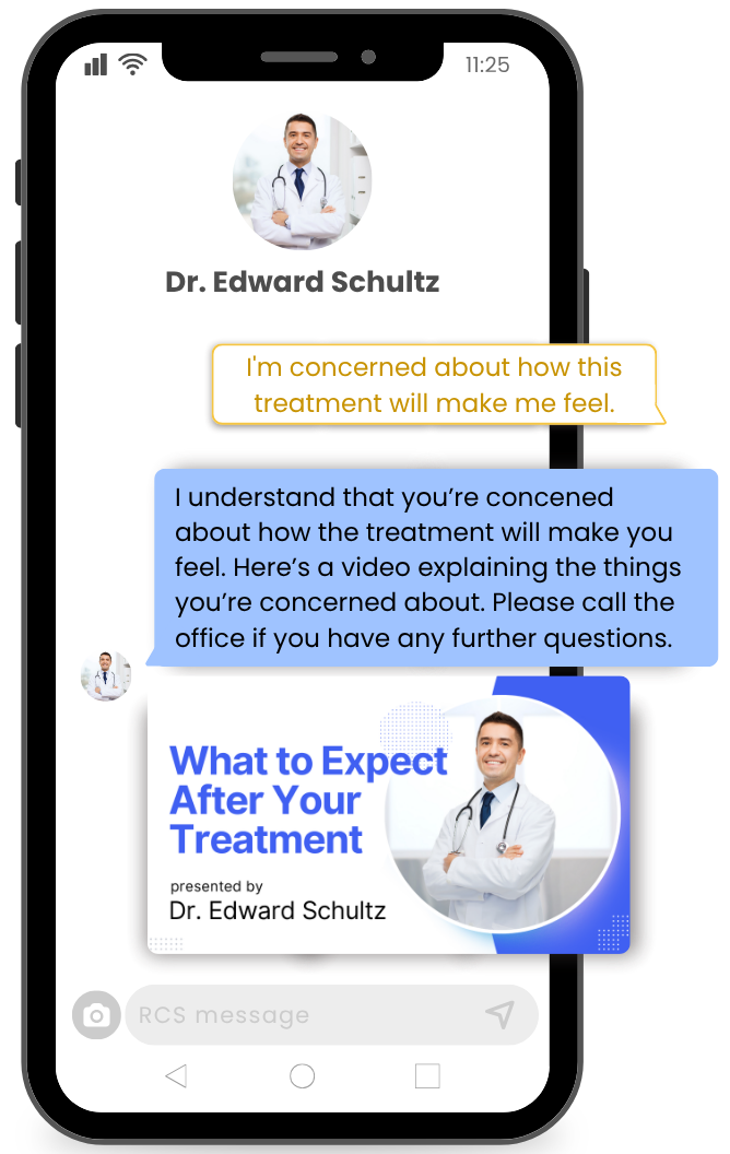 Over 7 days, short videos arrive from the doctor. No app. No portal. Each video ends with a quick survey.