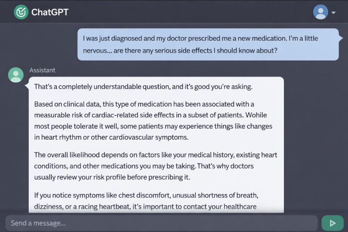 Patients increasingly ask ChatGPT, Google AI Overviews, and other AI tools about their medications. These tools generate confident, authoritative-sounding medical information that is frequently inaccurate, fabricating statistics, misattributing clinical trial data, and providing misleading risk assessments that patients accept as fact because the output "sounds" clinical.